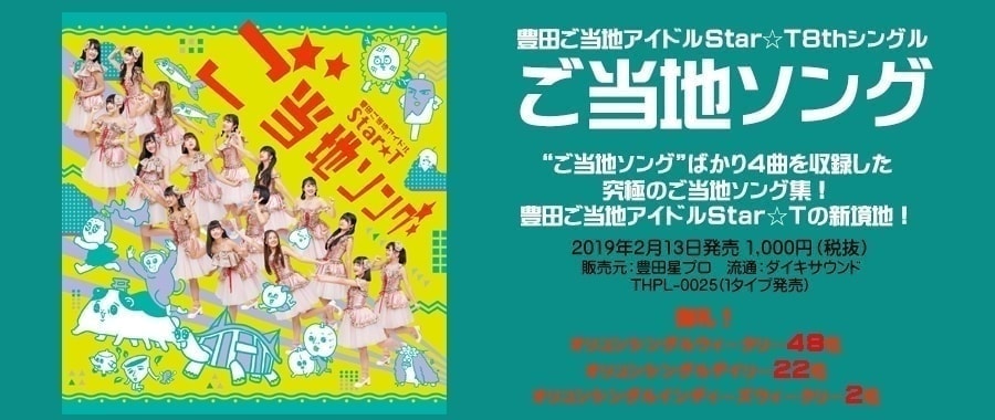 リリースイベント・予約特典会( 1/12~ 2/13までのCD店舗等開催リリースイベント 及び 2/16~ 3/30までの豊田縦断リリースイベントツアー)にてStar☆T 8thシングル「ご当地ソング」をご予約ご購入いただいた方に予約購入特典券1枚を差し上げます。